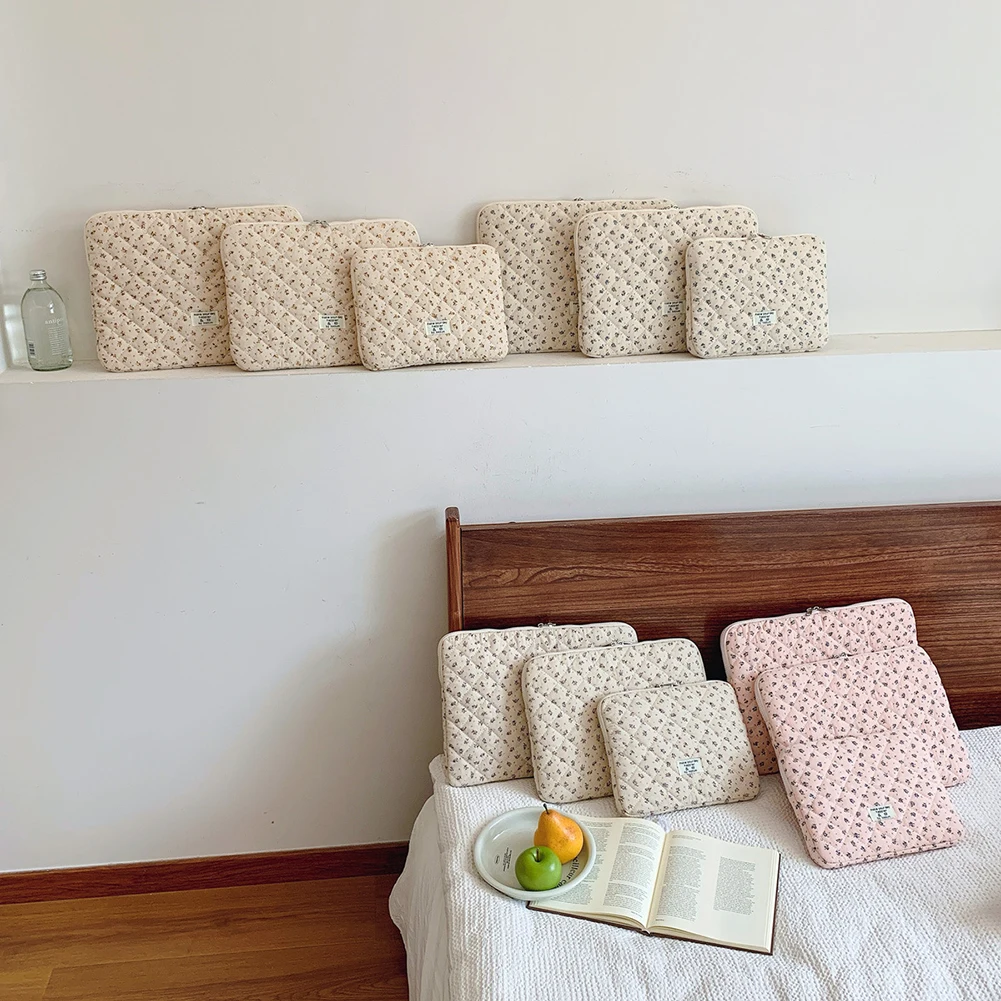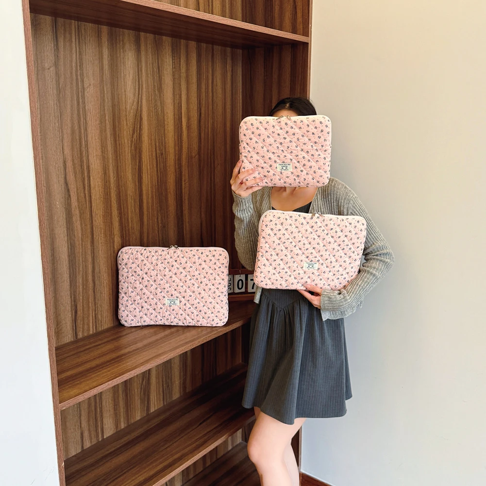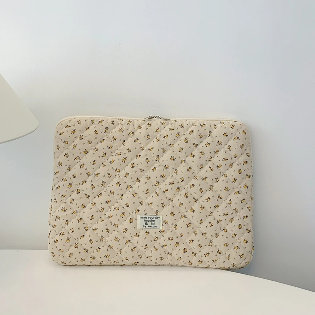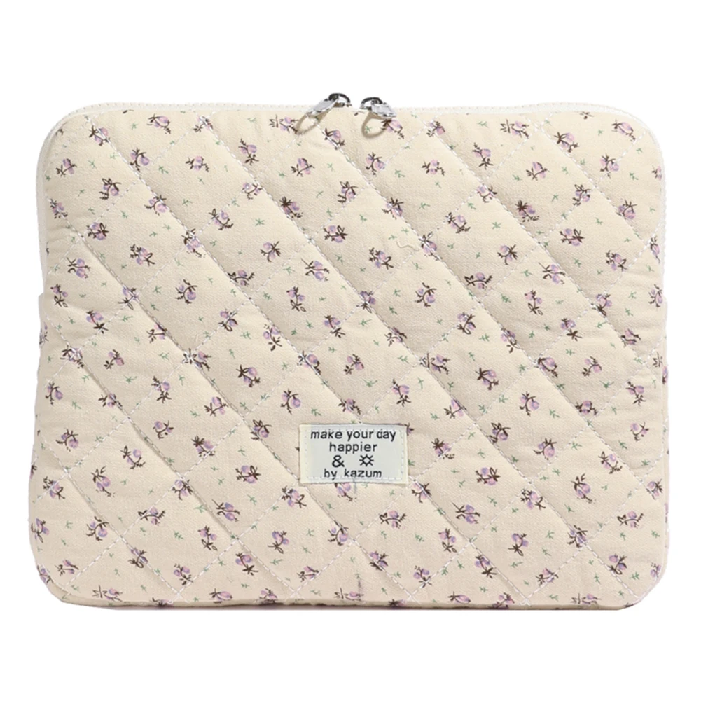 Flower Printed Laptop Sleeve Quilted Laptop Carrying Case Protective Cute Computer Sleeve for 11-15 Inch Laptop Tablet